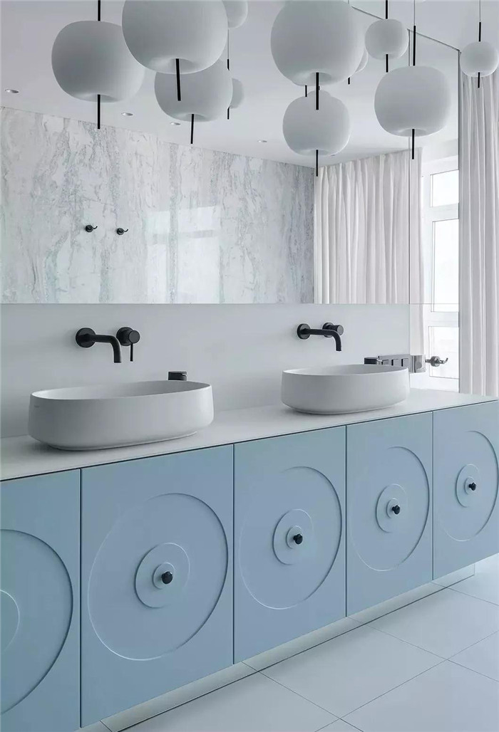 在蓝色系中,清水蓝是特别适合应用在家居空间里,它比深蓝淡泊,比淡蓝沉稳,但无论是作为软装上的搭配,还是墙色、墙砖的使用,都能保持空间整体的清爽,带来意想不到的视觉效果。