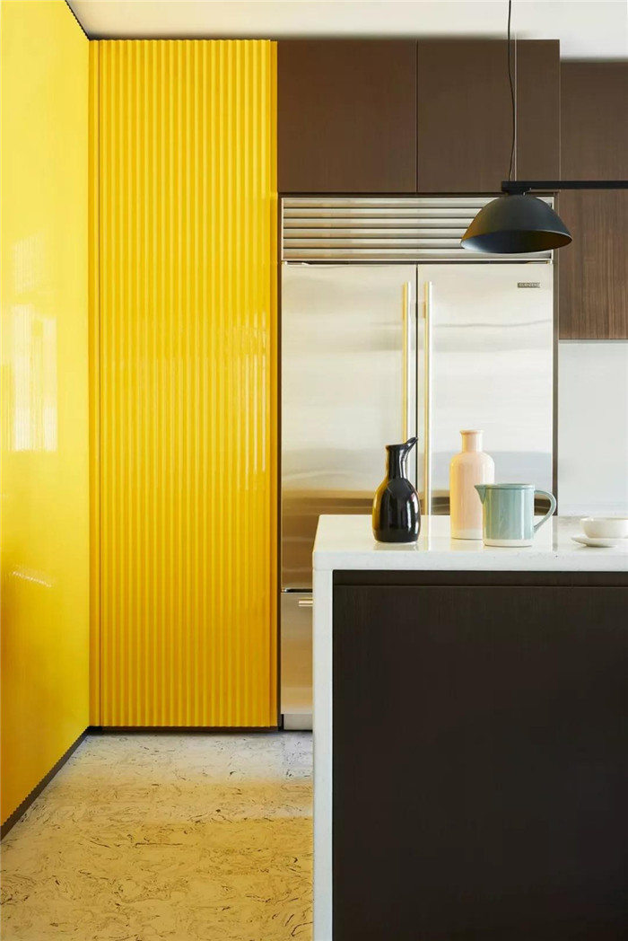 厨房大胆启用亮黄色装饰墙面,色彩的鲜明对比带来视觉的强烈冲击力。