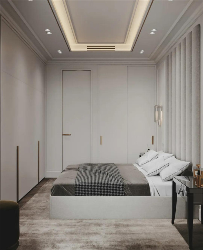 曙光银床头背景墙给人简约、舒适的视觉感受,百合灰良好的协调了空间上的分布,温煦的色调让空间之中有着和谐精美的氛围,搭配上冬日白窗帘,为居室增添无限的优雅气质与美感。艺术墙饰很好地填补了空间的空白。