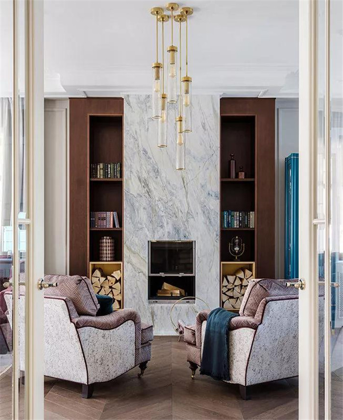 同时辅以中性色调如黑白棕等装饰靠包作为补充,层次丰富的空间将气质与质感表现的更加鲜明。