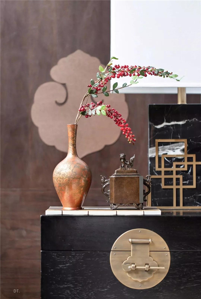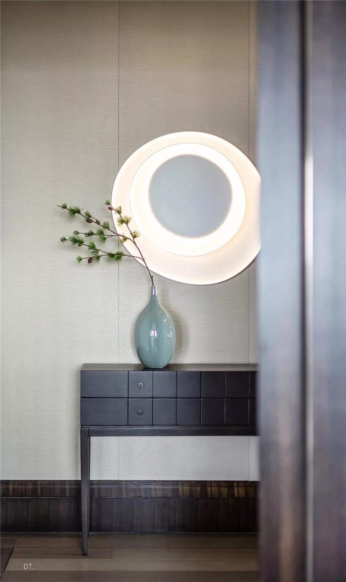 新中式的玄关设计,是时间考验而存留下来的精华,如同缓缓地讲述着经典与优雅的传奇,流露出隽永、含蓄典雅的新中国风韵。