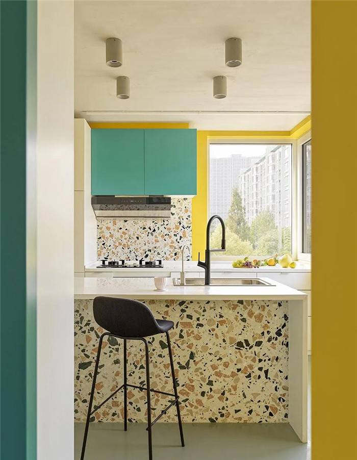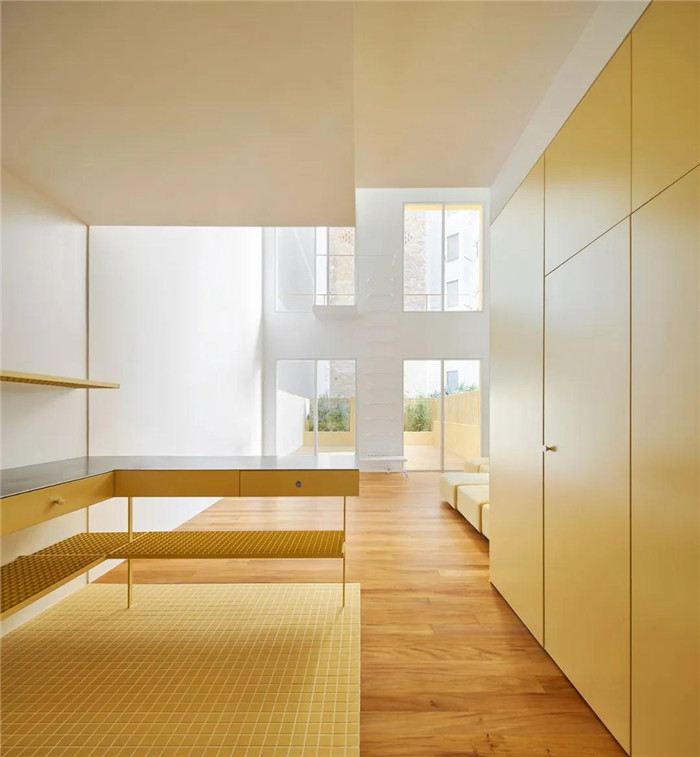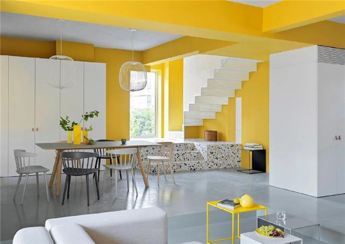 设计师采用黄色+白色分别装饰墙面,弥补了内部空间原有的采光不足。